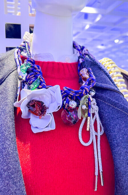 I did see one rail of clothing which caught my attention and piqued my interest. It was by Kingston, NY designers, The Falls. They completely rework discarded clothing and home items. I may or may not have left purchasing one of their fantabulous pillows.