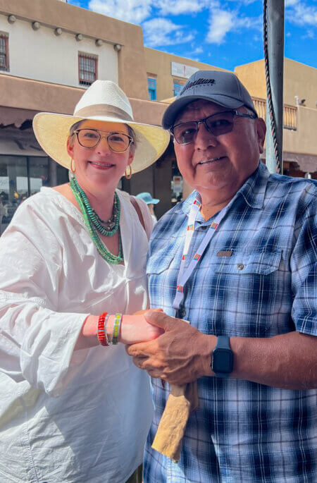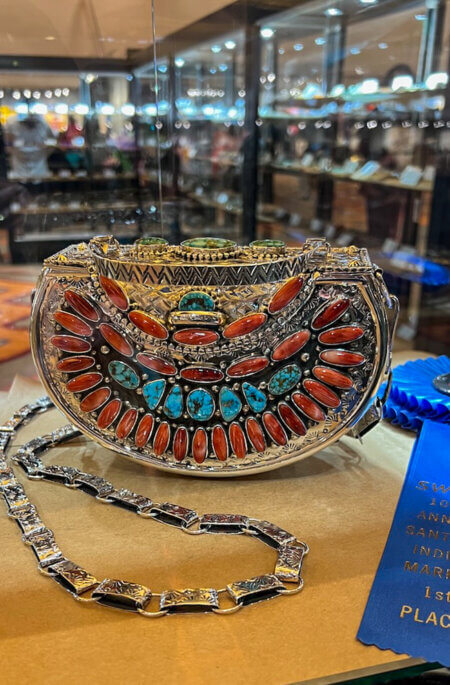 Since I was staying right by the Plaza, the heart of the market, I was awoken by soulful drumming around 8 am, which reverberated in my heart in the best possible way. As we strolled from my hotel, we were immersed in sounds and sights that truly energized me. Within the first five minutes, my friend and I already had purchased pendants from a Navajo designer.