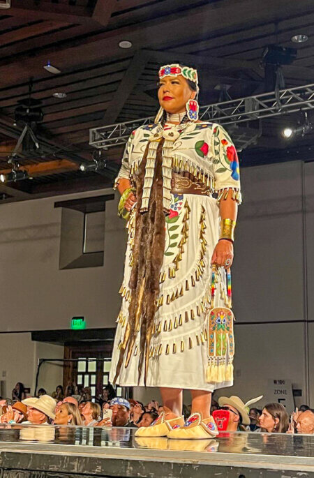 It started with a BANG with a solo Native American dance by one of the male models. The show featured five Native American designers, including Jamie Okuma, Penny Singer, Osamuskwasis, Lauren Good Day, and Jotay Kahm. While some looks were purely editorial, others really were wearable fashions – modern, yet with a Native American twist. I truly appreciated that the models came in all shapes and sizes. Such a breath of fresh air!!