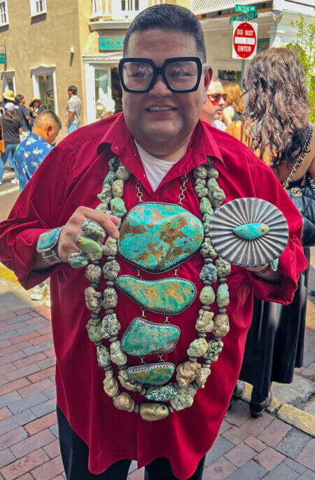 Not only are the artists a main attraction, but so are the attendees. Everyone was decked out in Native American jewelry—it was like a fashion show!! The whole feeling was one of great comradery and love of Native American art and spirit.